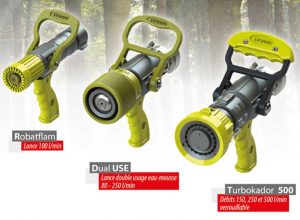 En recherche permanente d’innovation et d’agrément d’utilisation la société POK® a pensé et conçu, il y a 3 ans, une lance révolutionnaire capable de faciliter les manœuvres des Sapeurs-Pompiers et permettant le passage d’une gamme très variée de débits : de 1 000 à 5 000 L/min. Cette Lance monitor : La Montmirail .